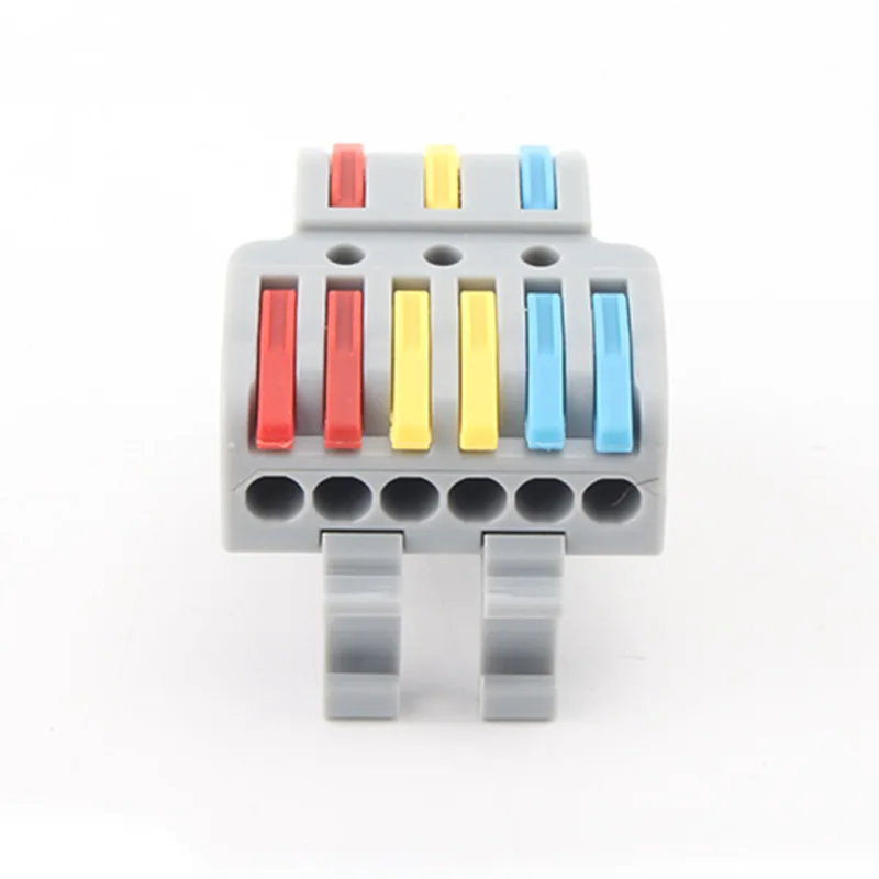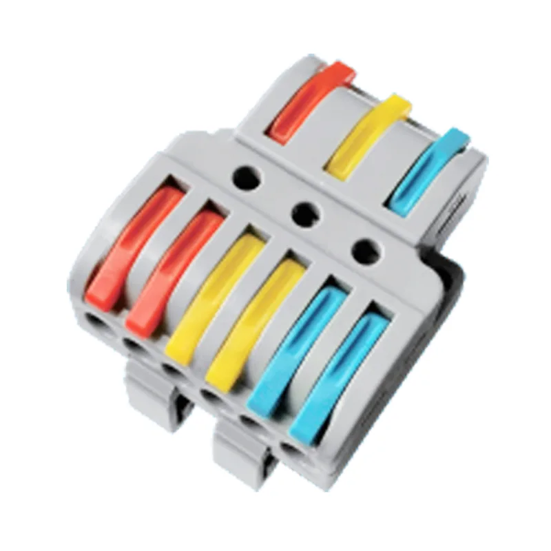 CHTAR 4mm2Multi-In Multi-Out Din Rail Typ Splicing Wire Snabbkopplingar är gjorda av UL94 V0 kvalitet PC-hölje material, Conductive är gjord av T2 koppar med tennpläterad och fjädern är gjord av S301. Den kan anslutas med 0,5-2,5 mm2mjuka trådar och 0,5-4mm2styva trådar, det gav många trådstorlekar att arbeta med att välja. Den kan anslutas väl med 2 ledningar in och 4 ledningar ut, som två separata ledningsanslutningar. Vi kan göra olika färger eller hölje och spakar för kunder att välja. Skarvtrådssnabbkopplingar kan enkelt tas bort och återanslutas.