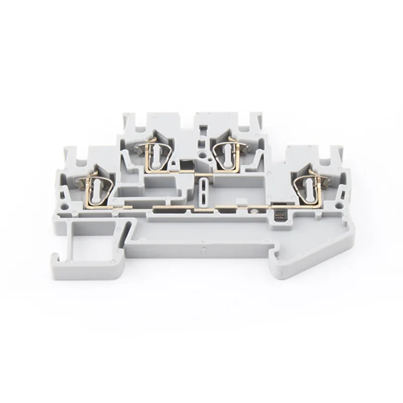 Den ledande banan är lika avsiktlig. Fjädern och kontakterna är stämplade av högpresterande kopparlegering - ofta en specifik mässingskvalitet för dess idealiska fjäderegenskaper - och pläteras sedan. Tenn- eller nickelplätering är inte bara en finish; det är en funktionell barriär. Det förhindrar bildandet av icke-ledande oxider på kontaktytorna, vilket är den primära orsaken till stigande kontaktmotstånd och termiskt fel över tiden. Denna noggranna materialvetenskap är vad som ligger till grund för den pålitliga anslutningen med låg resistans i STTB2.5 Spring Din Rail-terminalblocket. Resultatet är en komponent där materialvalen aktivt arbetar för att bevara den elektriska integriteten under hela din installations livslängd.